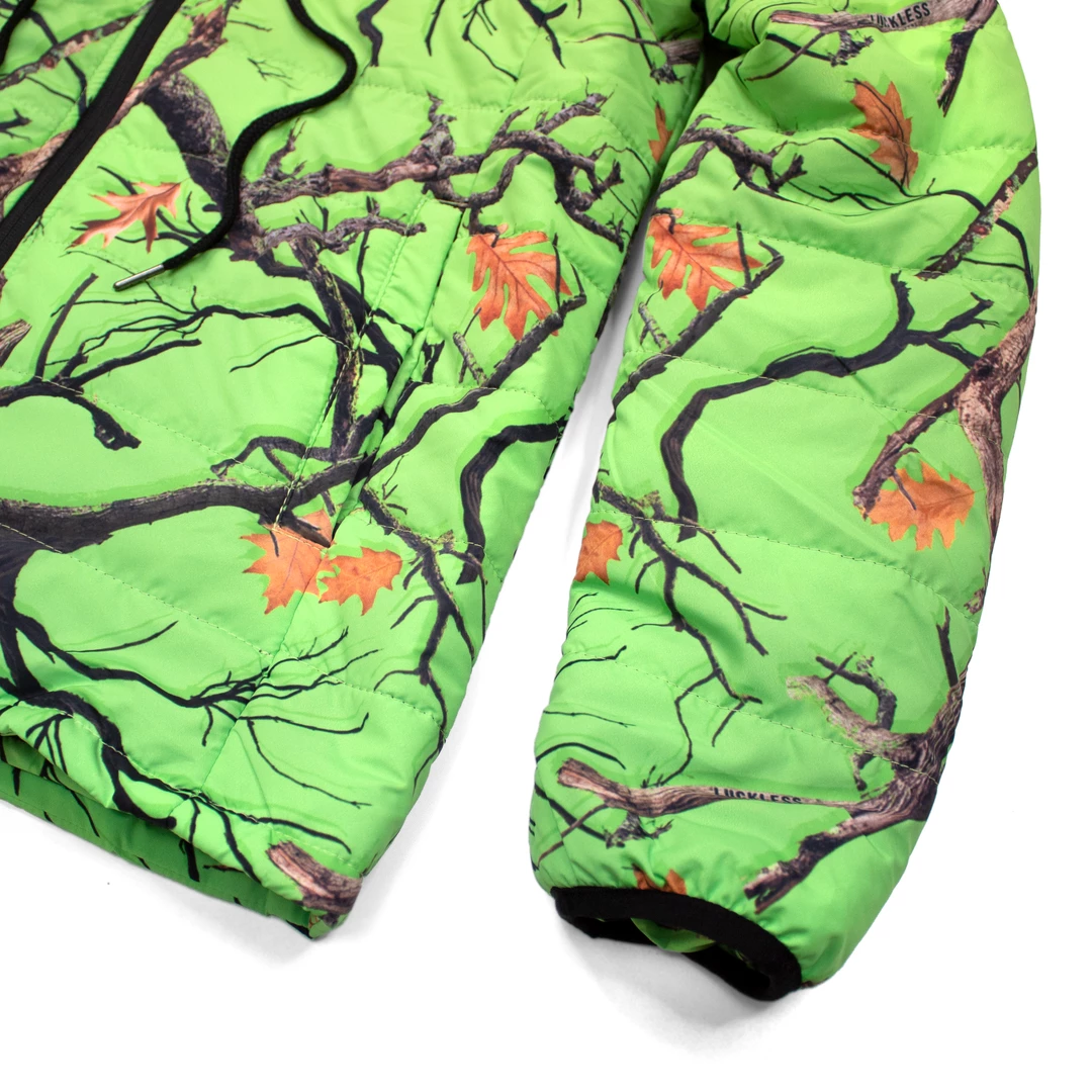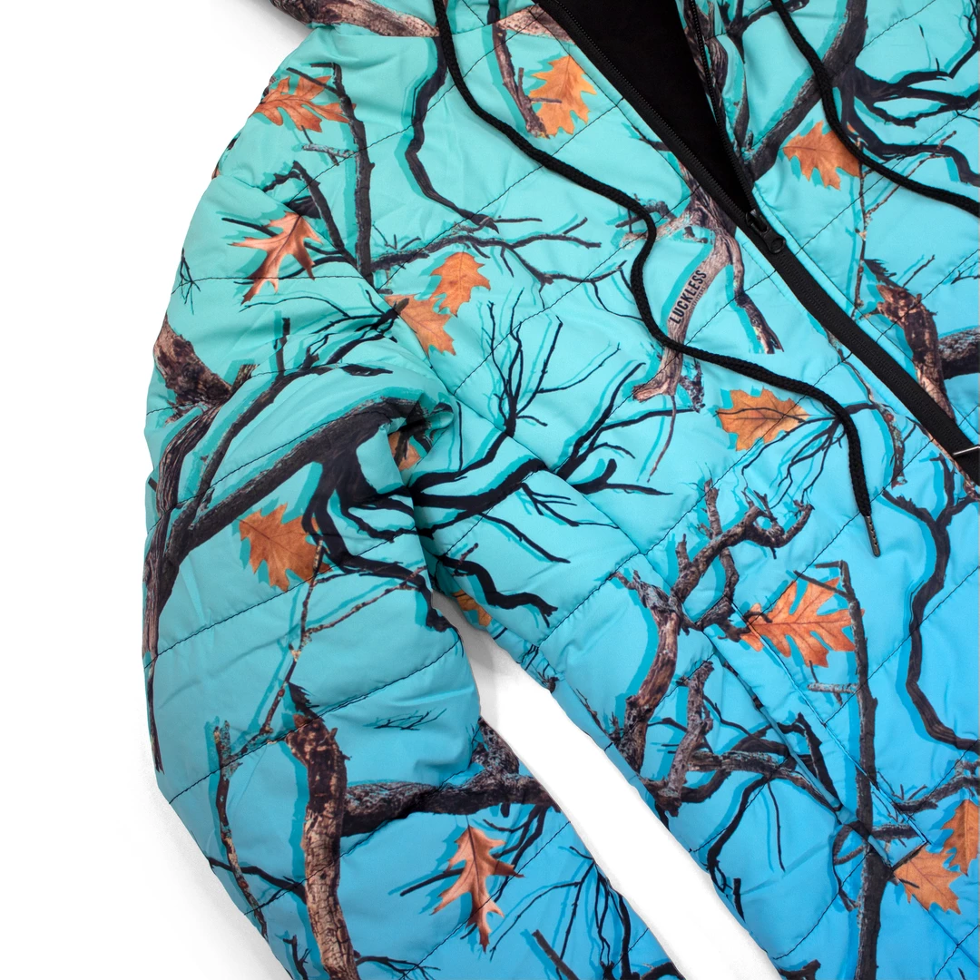 - Quilted bomber jacket with zipper closure and elastic cuffs provides maximum comfort.