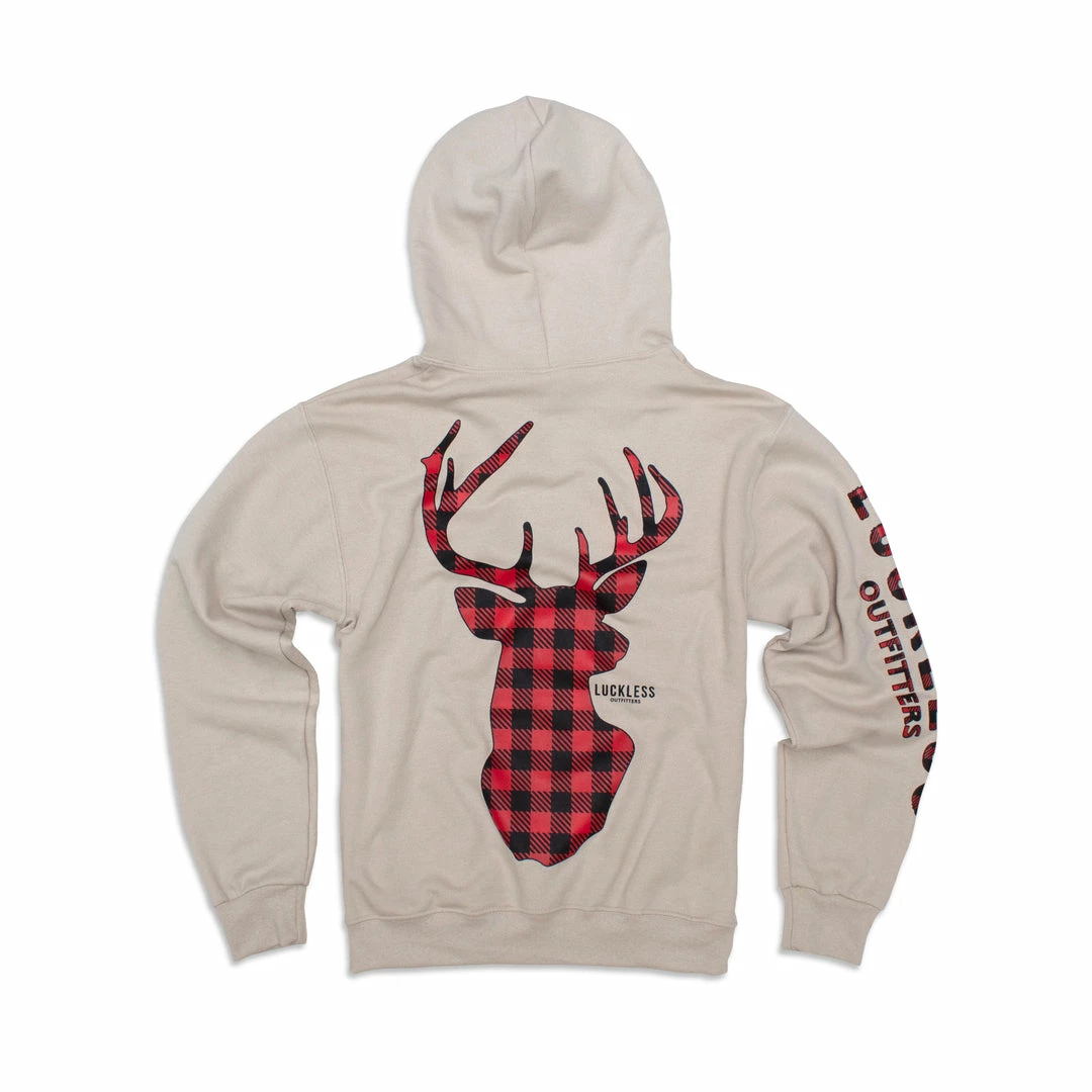 The rise in interest in Buffalo Plaid items lead us to create this hoodie using one of our original buck silhouette designs! You can see more details about this hoodie in the images.
