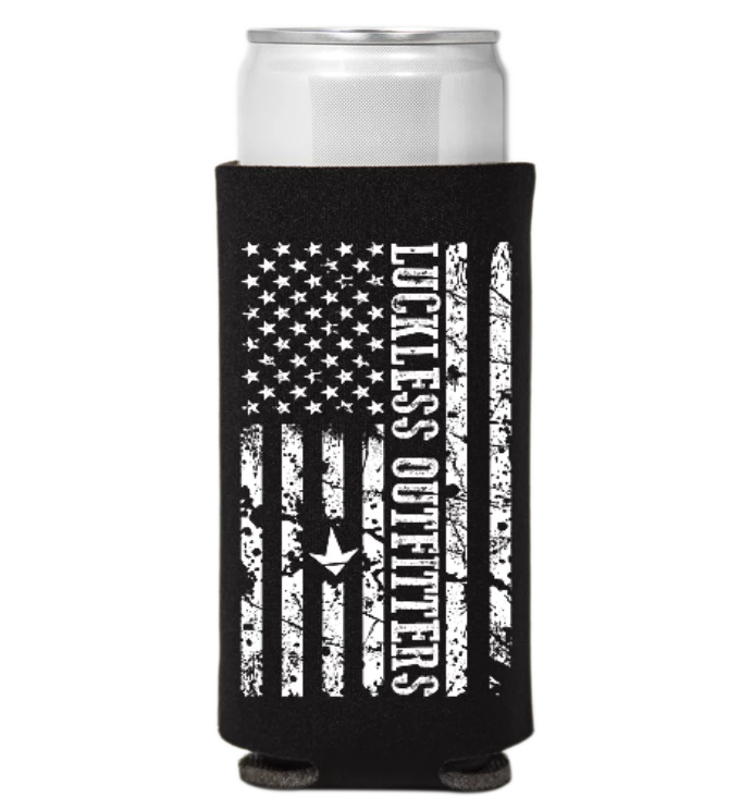 Best deal โ๏ธ Luckless Outfitters Grunge Flag Tall – Slim Can Koozie ๐
