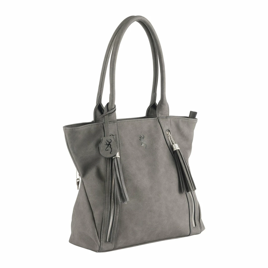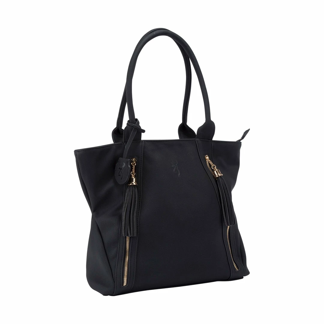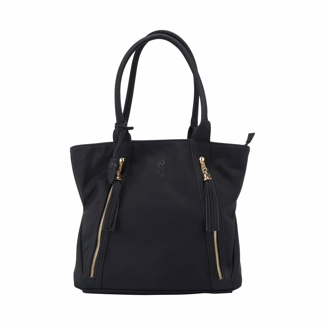 It’s all about what they can’t see. Internal and external pockets with tasseled zippers add a flair of fashion and the Buckmark. Stay under the radar while carrying with the Browning® Alexandria Large Handbag. Equipped with an adjustable internal handgun holster and lockable zipper, you can feel safe and secure knowing you are armed and ready for anything. The two quick access zippered pockets are perfect for storing small items like keys or money, while the internal zippered pocket is ideal for make-up or other essentials from Browning®.