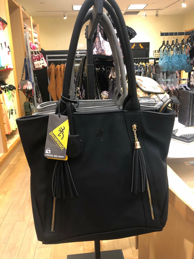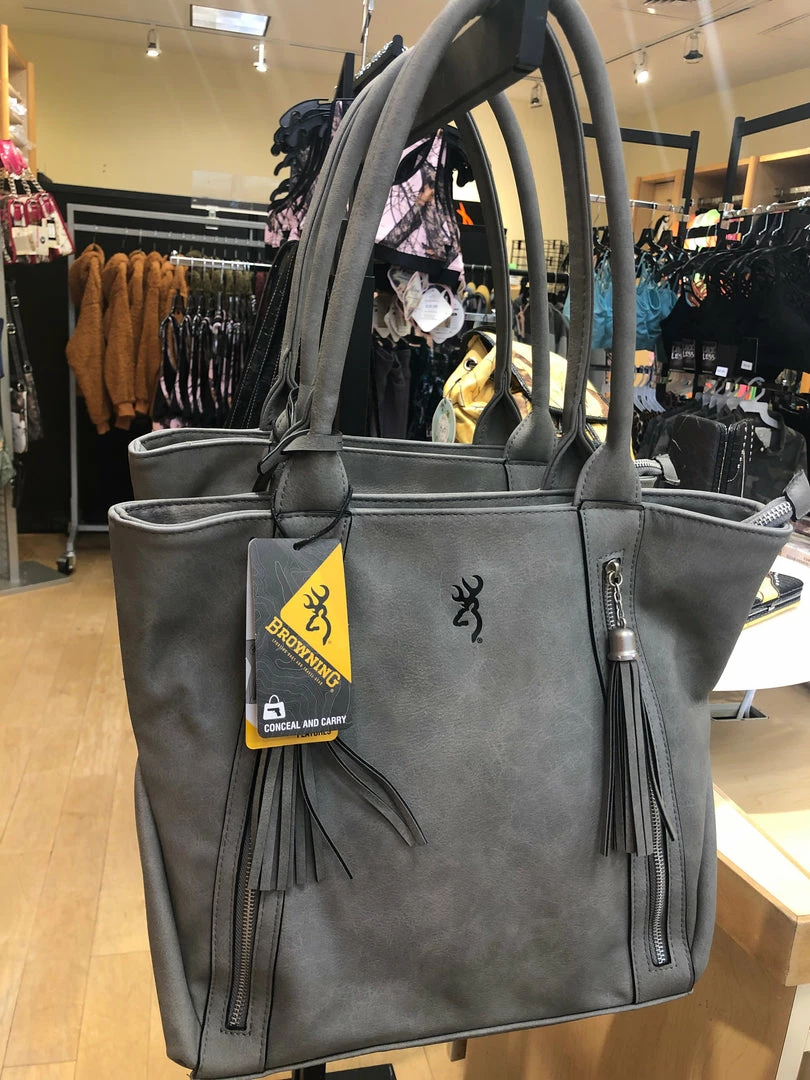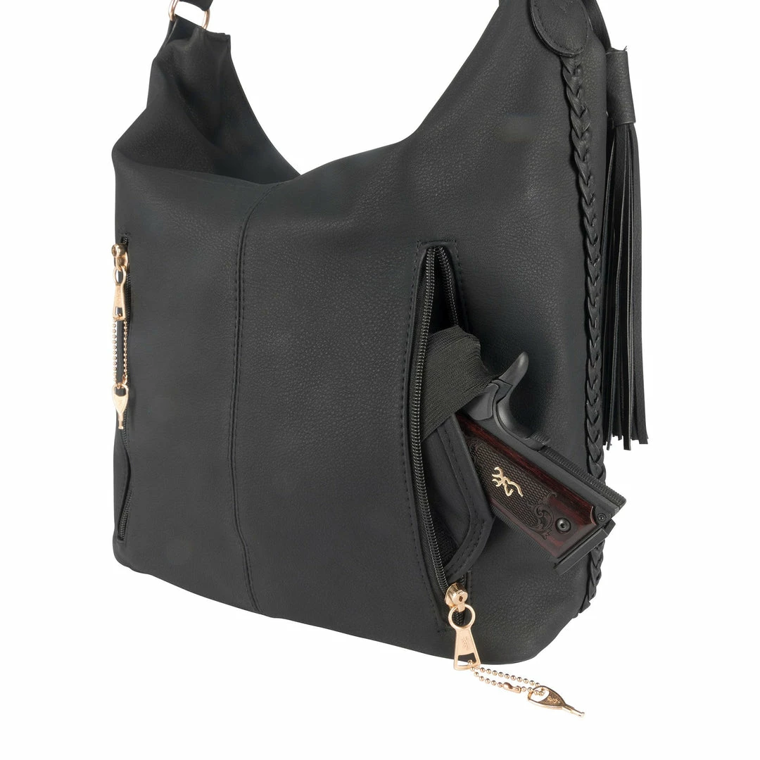 It’s all about what they can’t see. Internal and external pockets with tasseled zippers add a flair of fashion and the Buckmark. Stay under the radar while carrying with the Browning® Alexandria Large Handbag. Equipped with an adjustable internal handgun holster and lockable zipper, you can feel safe and secure knowing you are armed and ready for anything. The two quick access zippered pockets are perfect for storing small items like keys or money, while the internal zippered pocket is ideal for make-up or other essentials from Browning®.