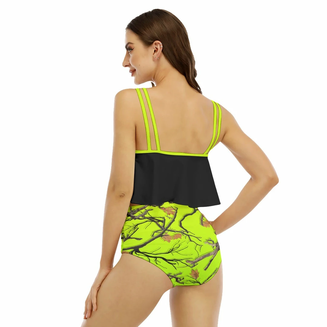 Sexy two-piece bikini with ruffles on the top, suspender top and lining at the bottom