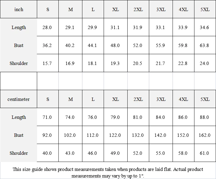 | centimeter | S | M | L | XL | 2XL | 3XL | 4XL | 5XL |