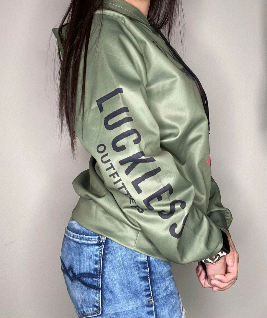 - Drawstring, black inner hood