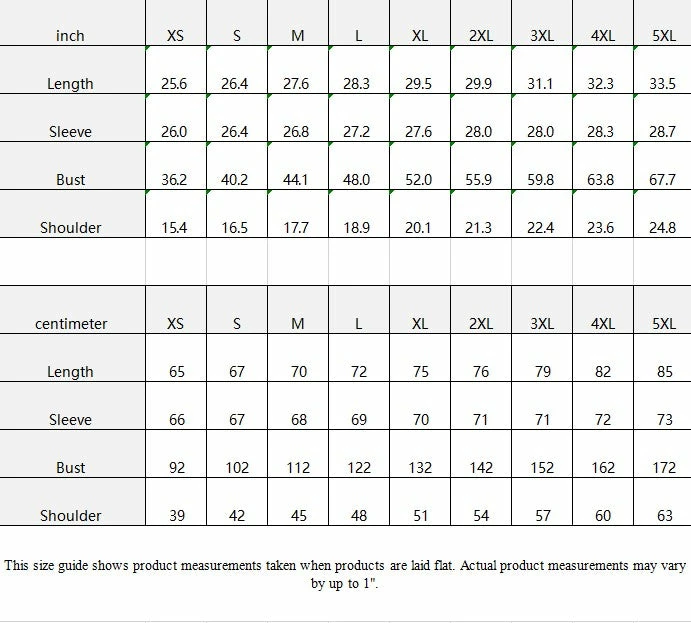| centimeter | XS | S | M | L | XL | 2XL | 3XL | 4XL | 5XL |